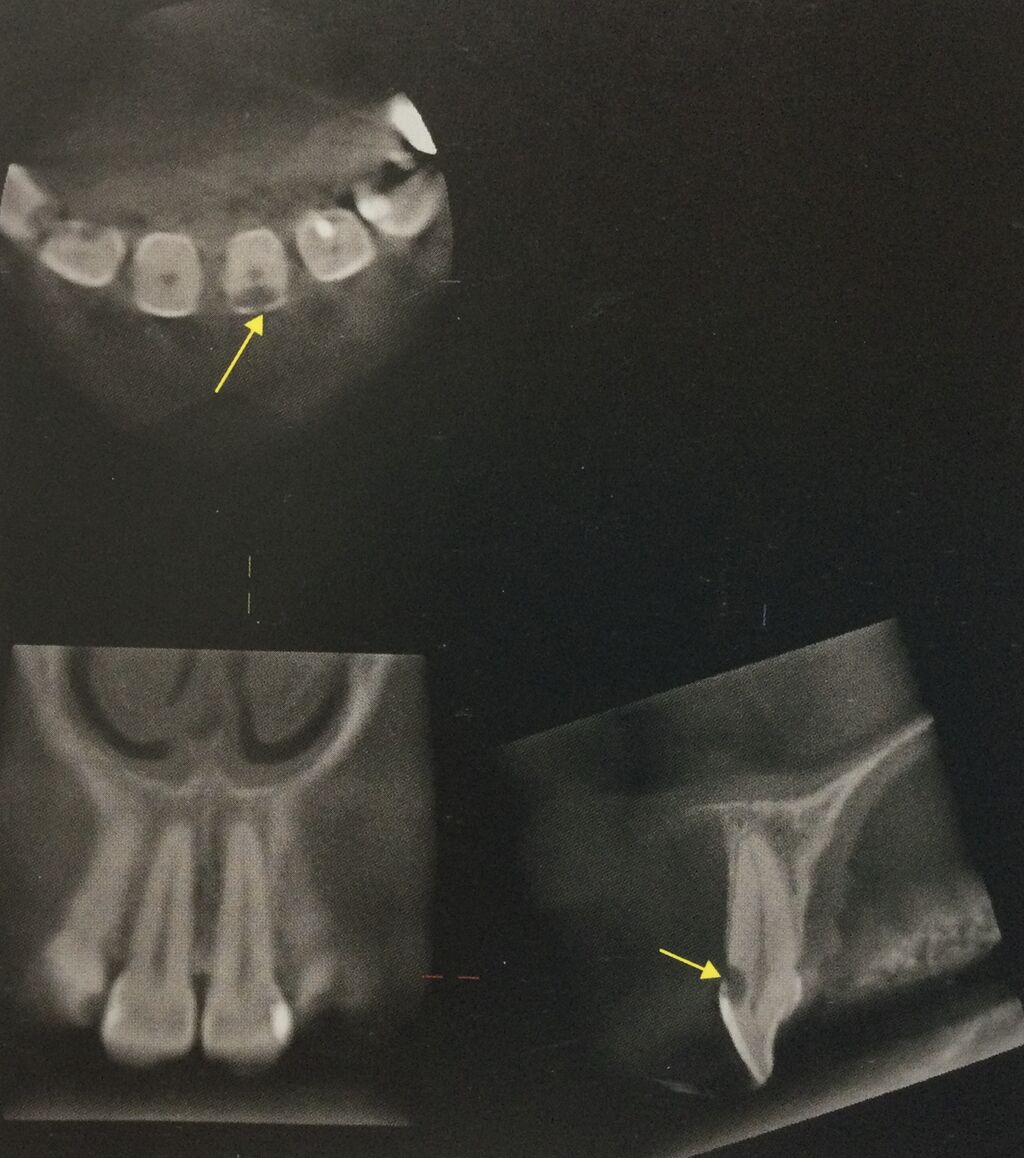 歯の真ん中にある黒い部分が、歯の神経です。