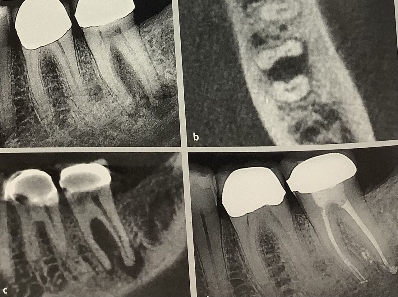 左下の奥歯の神経が死んじゃって、根っこに病気が出来てます。右のCTを見ると、ウリ、ひょうたん、そら豆みたいにくびれた形でしょう。