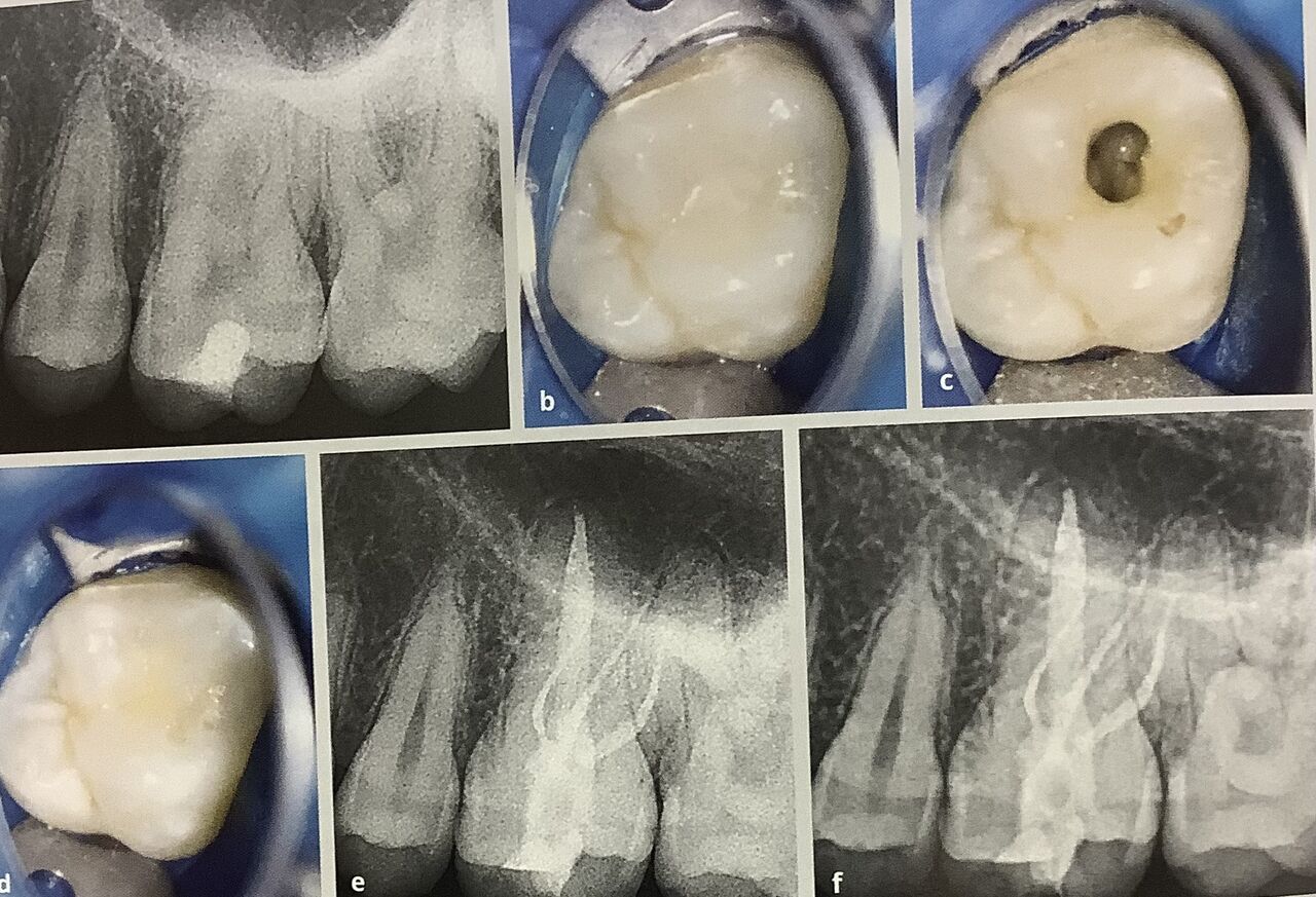 根管治療では神経へ器具が通る道、アクセスの穴を真ん中に開ける必要があります。